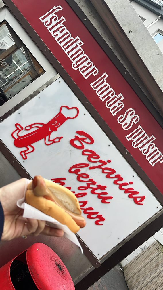 We stopped at Bæjarins Beztu Pylsur to get Icelandic hot dogs for lunch. What makes Icelandic hot dogs unique is that they’re mostly made of lamb. Lamb is super popular in Iceland, so you’ll have plenty of chances to try it. Lamb can be hit or miss for a lot of folks. For me it’s OK, but not something I would actively seek out to eat. I didn’t think that the hot dogs had a very strong lamb flavor though, so I would recommend trying them.